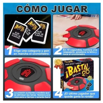 En ambos modos, selecciona el número de jugadores, recuerda que pueden ser de 2 hasta 6, espera 6 segundos para empezar el juego. Selecciona una carta en la que indica el concepto. Cada jugador tendrá 10 segundos para contestar y presionar el botón rojo para detener el reloj.