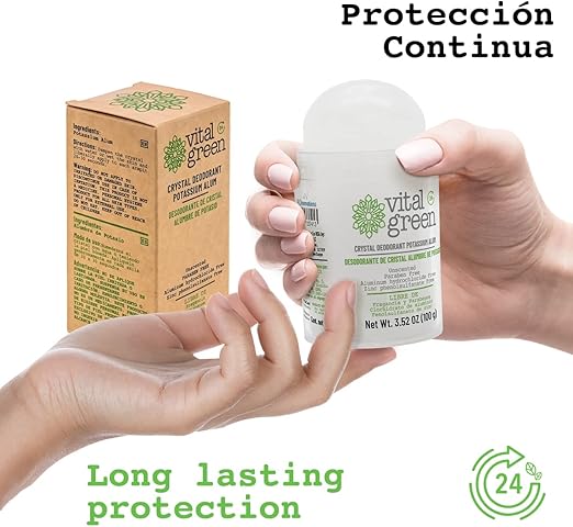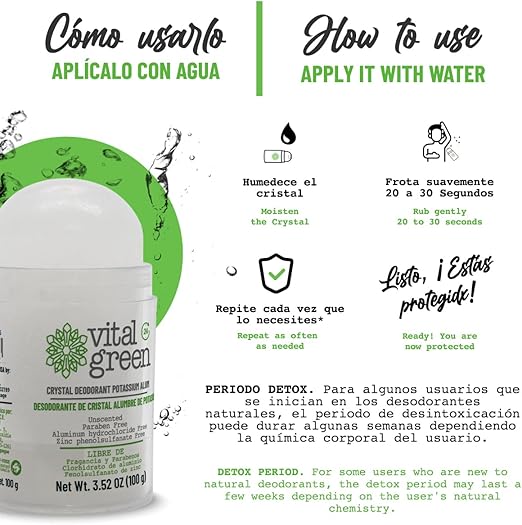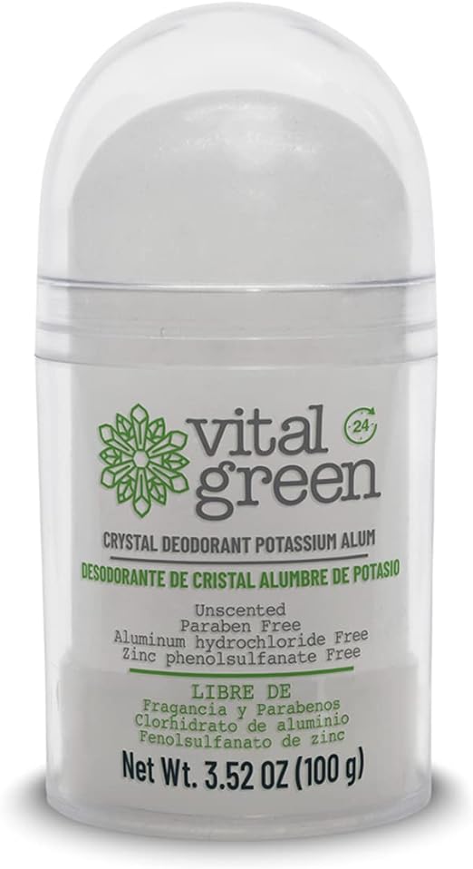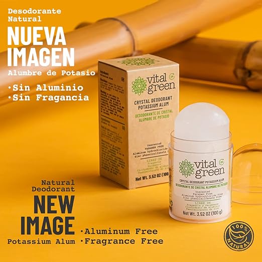Vital Green - Desodorante Natural de Piedra Cristal de Alumbre de Potasio, Sin Parabenos y Sin Alcohol. Elimina El Olor y No Mancha, Presentación 100 g - 3.5 oz