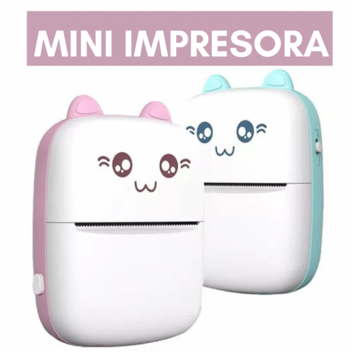 Es una impresora de bolsillo con un diseño adorable de estilo "kawaii" (con orejitas de gato). Utiliza tecnología de impresión térmica, lo que significa que no necesita tinta ni tóner para funcionar; solo requiere papel térmico especial, lo que la hace económica y fácil de mantener.